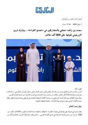 .ﺑﺮﻌﻟا ةءاﺮﻘﻟا يﺪﺤﺗ ﻦﻣ ﺔﻌﺳﺎﺘﻟا ةروﺪﻟا ﻓ تارﺎﻣﻹا ﺔﻟود سراﺪﻣ ﻦﻣ ﺔﺒﻟﺎﻃو ﺐﻟﺎﻃ فﻻآ 810 ﺔﻛرﺎﺸﻤﺑ هﺮﺨﻓ ﻦﻋ