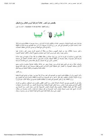 7/3/25, 10:11 AM Libya News - نطوﻟا حور مﻟﺎﻌﻠﻟ يورﺗ ﺔﯾﺗارﺎﻣإ ﺔﻣﻼﻋ ..بھذ نﻣ صﺻﻘﺑ - ﺎﯾﺑﯾﻟ رﺎﺑﺧأ
