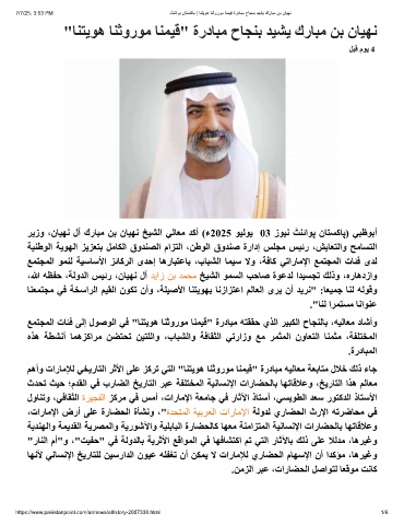 ﻢھأو تارﺎﻣﻺﻟ ﻲﺨﯾرﺎﺘﻟا ﺮﺛﻷا ﻰﻠﻋ ﺰﻛﺮﺗ ﻲﺘﻟا "ﺎﻨﺘﯾﻮھ ﺎﻨﺛورﻮﻣ ﺎﻨﻤﯿﻗ" ةردﺎﺒﻣ ﮫﯿﻟﺎﻌﻣ ﺔﻌﺑﺎﺘﻣ لﻼﺧ ﻚﻟذ ءﺎﺟ