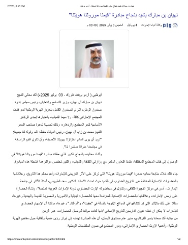 ﺎﮭﺗﺎﻗﻼﻋو ،ﺦﯾرﺎﺗﻟا اذھ مﻟﺎﻌﻣ مھأو تارﺎﻣﻺﻟ ﻲﺧﯾرﺎﺗﻟا رﺛﻷا ﻰﻠﻋ زﻛرﺗ ﻲﺗﻟا "ﺎﻧﺗﯾوھ ﺎﻧﺛوروﻣ ﺎﻧﻣﯾﻗ" ةردﺎﺑﻣ ﮫﯾﻟﺎﻌﻣ ﺔﻌﺑﺎﺗﻣ لﻼﺧ كﻟذ ءﺎﺟ