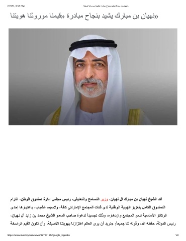 ﺎﻨﺘﯾﻮھ ﺎﻨﺛورﻮﻣ ﺎﻨﻤﯿﻗ» ةردﺎﺒﻣ حﺎﺠﻨﺑ ﺪﯿﺸﯾ كرﺎﺒﻣ ﻦﺑ نﺎﯿﮭﻧ»