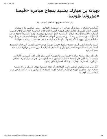 ،تارﺎﻣﻺﻟ ﻲﺨﻳرﺎﺘﻟا ﺮﺛﻷا ﻰﻠﻋ ﺰﻛﺮﺗ ﻲﺘﻟا «ﺎﻨﺘﻳﻮھ ﺎﻨﺛورﻮﻣ ﺎﻨﻤﯿﻗ» ةردﺎﺒﻣ ﺔﻌﺑﺎﺘﻣ لﻼﺧ ﻚﻟذ ءﺎﺟ