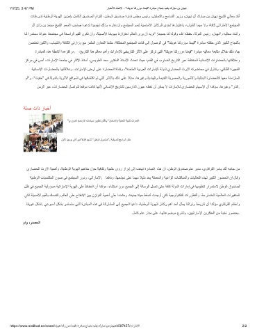 ﺎﻧﻟ ارﻣﺗﺳﻣ ﺎﻧاوﻧﻋ ﺎﻧﻌﻣﺗﺟﻣ ﻲﻓ ﺔﺧﺳارﻟا مﯾﻘﻟا نوﻛﺗ نأو ،ﺔﻠﯾﺻﻷا ﺎﻧﺗﯾوﮭﺑ ﺎﻧزازﺗﻋا مﻟﺎﻌﻟا ىرﯾ نأ دﯾرﻧ" :ﺎﻌﯾﻣﺟ ﺎﻧﻟ ﮫﻟوﻗو ،ﷲ ﮫظﻔﺣ ،ﺔﻟودﻟا سﯾﺋر ،نﺎﯾﮭﻧ".،ﮫﯾﻟﺎﻌﻣ دﺎﺷأو