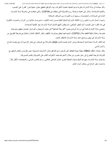 تارﺎﻣﻹا ﺔﻟود ﺔﻛرﺎﺷﻣ ﻲﻓ تﺳﻛﻌﻧا ﻲﺗﻟاو ،COP28 ﻲﻓ تﻘﻘﺣﺗ ﻲﺗﻟا ﺔﯾﻟوﻣﺷﻟا حور ﺔﻠﺻاوﻣ ﺔﯾﻣھأ ﻰﻟإ رﺎﺷأو ،ﺔﻣادﺗﺳﻣﻟا ﺔﯾﻣﻧﺗﻟاو