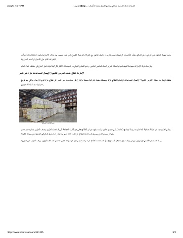 ﻎﯾﺮﻔﺗ ﻢﺘﯾ ﻲﺘﻟاو ،ءﺎﻌﺑرﻷا مﻮﯿﻟا ةﺰﻏ عﺎﻄﻗ ﻰﻟإ ﺮﺤﺒﻟا ﺮﺒﻋ تاﺪﻋﺎﺴﻣ ﻦط 2500ـﺑ ﺔﻠﻤﺤﻣ ﺔﯿﺗارﺎﻣإ ﺔﻨﯿﻔﺳ ﺖﻠﺻوو .ةﺰﻏ عﺎﻄﻘﻟ ﺔﯿﻧﺎﺴﻧﻹا تاﺪﻋﺎﺴﻤﻟا لﺎﺼﯾﻹ ”3ﻢﮭﺸﻟا سرﺎﻔﻟا“ ﺔﯿﻠﻤﻋ تارﺎﻣﻹا ﺖﻘﻠطأ