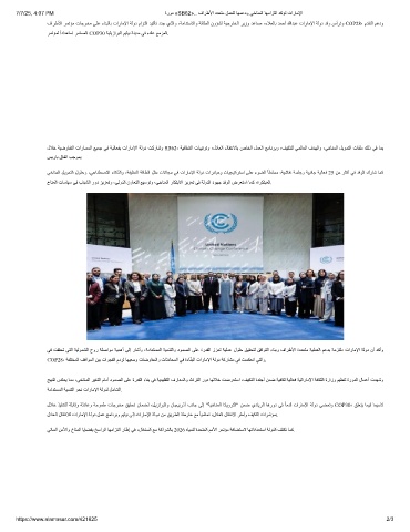 فاﺮطﻷا ﺮﻤﺗﺆﻣ تﺎﺟﺮﺨﻣ ﻰﻠﻋ ءﺎﻨﺒﻟﺎﺑ تارﺎﻣﻹا ﺔﻟود ماﺰﺘﻟا ﺪﯿﻛﺄﺗ دﺪﺟ يﺬﻟاو ،ﺔﻣاﺪﺘﺳﻻاو ﺔﻗﺎﻄﻟا نوﺆﺸﻟ ﺔﯿﺟرﺎﺨﻟا ﺮﯾزو ﺪﻋﺎﺴﻣ ،ءﻼﻌﻟﺎﺑ ﺪﻤﺣأ ﷲﺪﺒﻋ تارﺎﻣﻹا ﺔﻟود ﺪﻓو سأﺮﺗو COP28، مﺪﻘﺘﻟا ﻢﻋدو