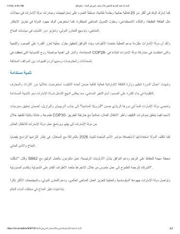 ﻲﻓ تﻘﻘﺣﺗ ﻲﺗﻟا ﺔﯾﻟوﻣﺷﻟا حور ﺔﻠﺻاوﻣ ﺔﯾﻣھأ ﻰﻟإ رﺎﺷأو ،ﺔﻣادﺗﺳﻣﻟا COP28، ﻲﻓ ةءﺎّﻧﺑﻟا تارﺎﻣﻹا ﺔﻟود ﺔﻛرﺎﺷﻣ ﻲﻓ تﺳﻛﻌﻧا ﻲﺗﻟاو