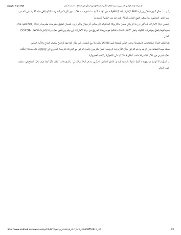 ﻲﺋﺎﻣﻟا نﻣﻷاو خﺎﻧﻣﻟا ﺎﯾﺎﺿﻘﺑ ﺦﺳارﻟا ﺎﮭﻣازﺗﻟا رﺎطإ ﻲﻓ ،لﺎﻐﻧﺳﻟا ﻊﻣ ﺔﻛارﺷﻟﺎﺑ 2026 هﺎﯾﻣﻠﻟ ةدﺣﺗﻣﻟا مﻣﻷا رﻣﺗؤﻣ ﺔﻓﺎﺿﺗﺳﻻ ﺎﮭﺗادادﻌﺗﺳا ﺔﻟودﻟا فﺛﻛﺗ ﺎﻣﻛ.
