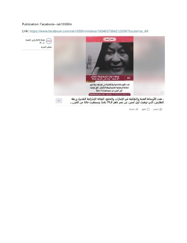 Publication: Facebook– rak1035fm Link: https://www.facebook.com/rak1035fm/videos/1834037384212339/?locale=ar_AR