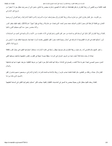ﺔﻓﺎﻘﺛﻟاو نﻔﻟا لﺎﺟﻣ ﻲﻓ ةرﯾﺑﻛﻟا ﺎﮭﺗازﺎﺟﻧإ ا ً رﻛذﺗﺳﻣ ،تارﺎﻣﻹا ةرﻛاذ ﻲﻓ ﺎًﺧﺳار لظﯾﺳ ﺎﮭﺗوﺻ نﺈﻓ شرﺎطﻟا ﺔﻘﯾزر بﺎﯾﻏ مﻏر ﮫﻧأ ﻲﻣﺳﺎﻘﻟا مﻟﺎﺳ ﺦﯾﺷﻟا رﺑﺗﻋاو.