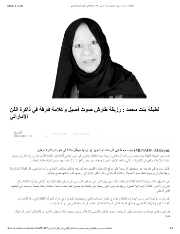 7/8/25, 9:13 AM ﻲﺗارﺎﻣﻹا نﻔﻟا ةرﻛاذ ﻲﻓ ﺔﻗرﺎﻓ ﺔﻣﻼﻋو لﯾﺻأ توﺻ شرﺎط ﺔﻘﯾزر : دﻣﺣﻣ تﻧﺑ ﺔﻔﯾطﻟ