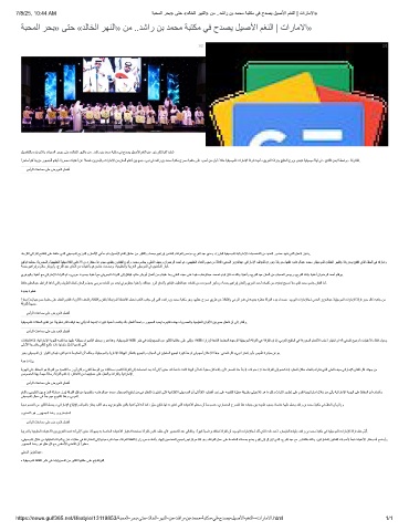 ًازﺎﺠﻧإ ّﺪﻌُﯾ ﺎﮭﺣﺮﺴﻣ ﺔﺒﺸﺧ ﻰﻠﻋ ﻞﻔﺤﻟا ﻢﯾﺪﻘﺘﻓ ،ﺔﯾﺮﺛﻷا ﻒﺤﺘﻟاو ﺔﻓﺎﻘﺜﻟاو ﻦﻔﻟﺎﺑ ﺔﻄﺒﺗﺮﻤﻟا ﺔﻄﺸﻧﻷا ﻞﻤﺤﺗ ﺐﺘﻜﻟا ﺐﻧﺎﺟ ﻰﻟإ ﻲﺘﻟا ،ﺪﺷار ﻦﺑ ﺪﻤﺤﻣ ﺔﺒﺘﻜﻣ ﻮھو ،ﻢﯿﻈﻋ حﺮﺻ ﻖﯾﺮط ﻦﻋ ﺔﻓﺎﻘﺜﻟاو ﻲﻋﻮﻟا ﺮﺸﻧ ﻲﻓ ةﺪﯾﺪﺟ ةﻮﻄﺧ ﺔﻗﺮﻔﻟا ءﺪﺒﺑ ءاﺪﻌﺳ» :«مﻮﯿﻟا تارﺎﻣﻹا»ـﻟ ﻲﻧﺪﻤﻟا ﺰﯾﺰﻌﻟاﺪﺒﻋ ﺔﯿﻘﯿﺳﻮﻤﻟا تارﺎﻣﻹا ﺔﻗﺮﻓ ﺮﯾﺪﻣ لﺎﻗ ،ﮫﺒﻧﺎﺟ ﻦﻣ