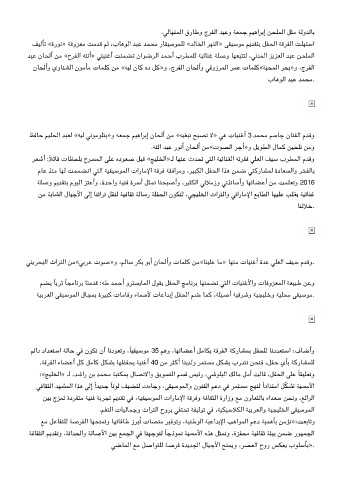 مﺎﻋ ﺬﻨﻣ ﺎﻬﻟ ﺖﻤﻤﻀﻧا ﺘﻟا ﺔﻴﻘﻴﺳﻮﻤﻟا تارﺎﻣﻹا ﺔﻗﺮﻓ ﺔﻘﻓاﺮﻣو ،ﺮﻴﺒﻟا ﻞﻔﺤﻟا اﺬﻫ ﻦﻤﺿ ﺘﻛرﺎﺸﻤﻟ ةدﺎﻌﺴﻟاو ﺮﺨﻔﻟﺎﺑ