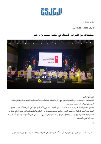 تارﺎﻣﻹا ﺔﻗﺮﻓ ﺎﻬﺘﻣﺪﻗ ﺔﻴﺋﺎﻨﺜﺘﺳا ﺔﻴﺴﻣأ ،ﺖﺒﺴﻟا ءﺎﺴﻣ ،ﺔﻓﺎﻘﺜﻟا ةرازو ﻊﻣ نوﺎﻌﺘﻟﺎﺑ ،ﺪﺷار ﻦﺑ ﺪﻤﺤﻣ ﺔﺒﺘﻣ ﺖﻓﺎﻀﺘﺳا
