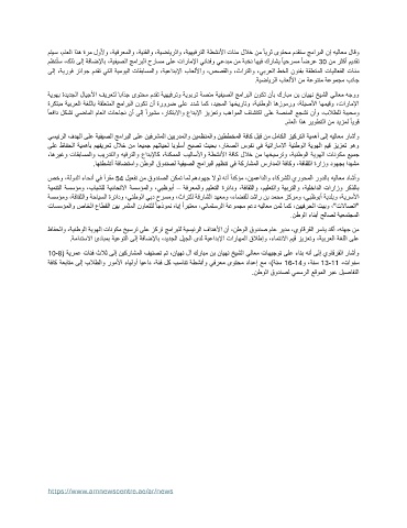.ةمادتسلاا ئدابمب ةيعوتلا ىلإ ةفاضلإاب ،ديدجلا ليجلا ىدل ةيعادبلإا تاراهملا قلاطإو ،ءامتنلاا ميق زيزعتو ،ةيبرعلا ةغللا ىلع