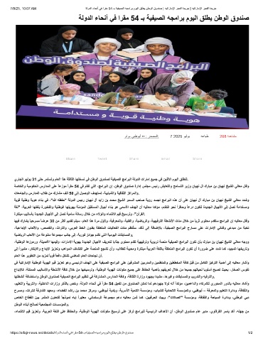 7/8/25, 10:07 AM ﺔﻟودﻟا ءﺎﺣﻧأ ﻲﻓ ارﻘﻣ 54 ـﺑ ﺔﯾﻔﯾﺻﻟا ﮫﺟﻣارﺑ موﯾﻟا ﻖﻠطﯾ نطوﻟا قودﻧﺻ | ﮫﯾﺗارﺎﻣﻹا رﺟﻔﻟا ةدﯾرﺟ | ﮫﯾﺗارﺎﻣﻹا رﺟﻔﻟا ةدﯾرﺟ