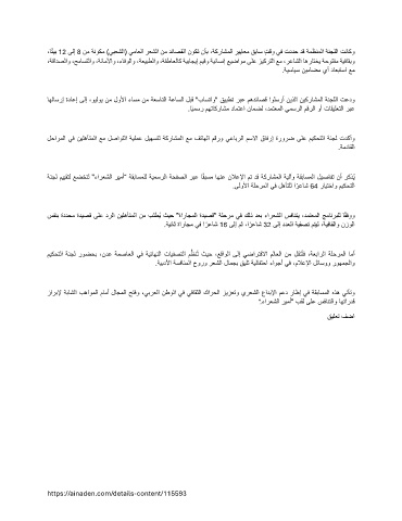 ،اًتيب 12 ىلإ 8 نم ةنوكم ) يبعشلا ( يماعلا رعشلا نم دئاصقلا نوكت نأب ،ةكراشملا ريياعم قباس تقو يف تددح دق ةمظنملا ةنجللا تناكو