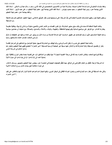 64 رﺎﯿﺘﺧاو ﻢﯿﻜﺤﺘﻟا ﺔﻨﺠﻟ ﻢﯿﯿﻘﺘﻟ ﻊﻀﺨﺘﻟ ”ءاﺮﻌﺸﻟا ﺮﯿﻣأ“ ﺔﻘﺑﺎﺴﻤﻠﻟ ﺔﯿﻤﺳﺮﻟا ﺔﺤﻔﺼﻟا ﺮﺒﻋ ﺎًﻘﺒﺴﻣ ﺎﮭﻨﻋ نﻼﻋﻹا ﻢﺗ ﺪﻗ ﺔﻛرﺎﺸﻤﻟا ﺔﯿﻟآو ﺔﻘﺑﺎﺴﻤﻟا ﻞﯿﺻﺎﻔﺗ نأ ﺮﻛﺬُﯾ