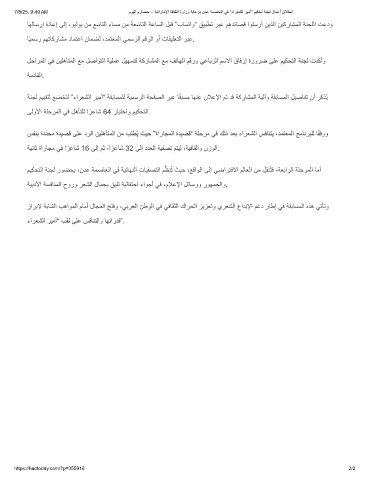ﺔﻧﺟﻟ مﯾﯾﻘﺗﻟ ﻊﺿﺧﺗﻟ ”ءارﻌﺷﻟا رﯾﻣأ“ ﺔﻘﺑﺎﺳﻣﻠﻟ ﺔﯾﻣﺳرﻟا ﺔﺣﻔﺻﻟا رﺑﻋ ﺎًﻘﺑﺳﻣ ﺎﮭﻧﻋ نﻼﻋﻹا مﺗ دﻗ ﺔﻛرﺎﺷﻣﻟا ﺔﯾﻟآو ﺔﻘﺑﺎﺳﻣﻟا لﯾﺻﺎﻔﺗ نأ رﻛذُﯾ