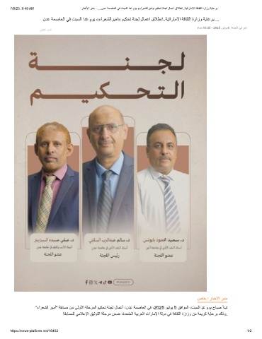 ”ءارﻌﺷﻟا رﯾﻣأ“ ﺔﻘﺑﺎﺳﻣ نﻣ ﻰﻟوﻷا ﺔﻠﺣرﻣﻟا مﯾﻛﺣﺗ ﺔﻧﺟﻟ لﺎﻣﻋأ ،ندﻋ ﺔﻣﺻﺎﻌﻟا ﻲﻓ ،2025 وﯾﻟوﯾ 5 ﻖﻓاوﻣﻟا ،تﺑﺳﻟا ٍدﻏ موﯾ حﺎﺑﺻ أدﺑﺗ