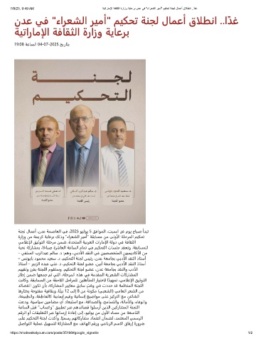 نﺪﻋ ﻲﻓ "ءاﺮﻌﺸﻟا ﺮﻴﻣأ" ﻢﻴﻜﺤﺗ ﺔﻨﺠﻟ لﺎﻤﻋأ قالﻄﻧا ..اﺪﻏ