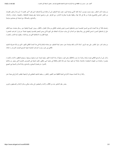 دﮭﺷﻣﻟا كﯾرﺣﺗ ﮫﻧﺄﺷ نﻣ يذﻟا ،رﯾﺑﻛﻟا ﻲﻓﺎﻘﺛﻟا ثدﺣﻟا اذھ ﻲﻓ ﺔﻛرﺎﺷﻣﻟﺎﺑ ﮫﺗدﺎﻌﺳ نﻋ ،مﯾﻛﺣﺗﻟا ﺔﻧﺟﻟ وﺿﻋ ،ندﻋ ﺔﻌﻣﺎﺟﺑ دﻘﻧﻟاو بدﻷا ذﺎﺗﺳأ ،رﯾﺑزﻟا هدﺑﻋ ﻲﻠﻋ روﺗﻛدﻟا رّﺑﻋ ،رﺧآ بﻧﺎﺟ نﻣ