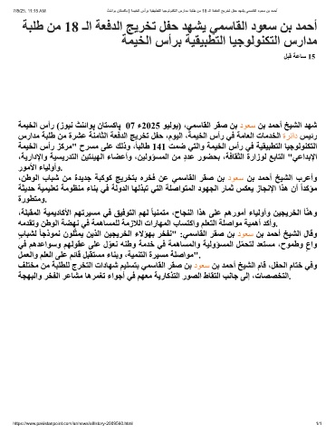 7/8/25, 11:15 AM ٹﻧﺋاوﺑ نﺎﺗﺳﮐﺎﺑ | ﺔﻣﯾﺧﻟا سأرﺑ ﺔﯾﻘﯾﺑطﺗﻟا ﺎﯾﺟوﻟوﻧﻛﺗﻟا سرادﻣ ﺔﺑﻠط نﻣ 18 ـﻟا ﺔﻌﻓدﻟا ﺞﯾرﺧﺗ لﻔﺣ دﮭﺷﯾ ﻲﻣﺳﺎﻘﻟا دوﻌﺳ نﺑ دﻣﺣأ