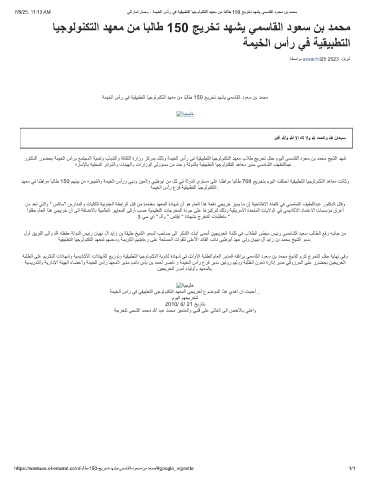 7/8/25, 11:13 AM ﻲﺗارﺎﻣا لﺻو - ﺔﻣﯾﺧﻟا سأر ﻲﻓ ﺔﯾﻘﯾﺑطﺗﻟا ﺎﯾﺟوﻟوﻧﻛﺗﻟا دﮭﻌﻣ نﻣ ﺎﺑﻟﺎط 150 ﺞﯾرﺧﺗ دﮭﺷﯾ ﻲﻣﺳﺎﻘﻟا دوﻌﺳ نﺑ دﻣﺣﻣ