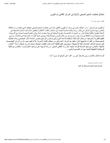 ﺔﻓﺎﻘﺜﻟا ةرازو ﮫﻤﻈﻨﺗ يﺬﻟا ،2025 ﻲﻔﯿﺼﻟا ﻢﯿﺨﻤﻟا تﺎﯿﻟﺎﻌﻓ ،ﻲﻋاﺪﺑﻹا ﻲﻓﺎﻘﺜﻟا ﻦﯾﻮﯿﻘﻟا مأ ﺰﻛﺮﻣ ﻲﻓ مﻮﯿﻟا ﺖﻘﻠﻄﻧا / ماو / ﻮﯿﻟﻮﯾ 8 ﻲﻓ ﻦﯾﻮﯿﻘﻟا مأ