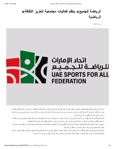7/9/25, 10:47 AM «ﺔﯾﺿﺎﯾرﻟا ﺔﻓﺎﻘﺛﻟا زﯾزﻌﺗﻟ ﺔﯾﻌﻣﺗﺟﻣ تﺎﯾﻟﺎﻌﻓ مظﻧﯾ «ﻊﯾﻣﺟﻠﻟ ﺔﺿﺎﯾرﻟا