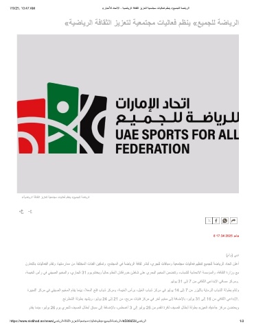 7/9/25, 10:47 AM «رﺎﺑﺧﻸﻟ دﺎﺣﺗﻻا - ﺔﯾﺿﺎﯾرﻟا ﺔﻓﺎﻘﺛﻟا زﯾزﻌﺗﻟ ﺔﯾﻌﻣﺗﺟﻣ تﺎﯾﻟﺎﻌﻓ مظﻧﯾ «ﻊﯾﻣﺟﻠﻟ ﺔﺿﺎﯾرﻟا