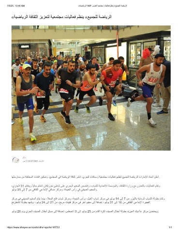 7/9/25, 10:46 AM «ﺔﯾﺿﺎﯾرﻟا ﺔﻓﺎﻘﺛﻟا زﯾزﻌﺗﻟ ﺔﯾﻌﻣﺗﺟﻣ تﺎﯾﻟﺎﻌﻓ مظﻧﯾ «ﻊﯾﻣﺟﻠﻟ ﺔﺿﺎﯾرﻟا