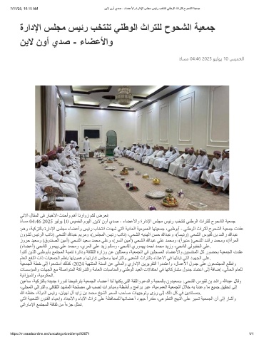 7/11/25, 10:15 AM نﯾﻻ نوأ يدﺻ - ءﺎﺿﻋﻷاو ةرادﻹا سﻠﺟﻣ سﯾﺋر بﺧﺗﻧﺗ ﻲﻧطوﻟا ثارﺗﻠﻟ حوﺣﺷﻟا ﺔﯾﻌﻣﺟ