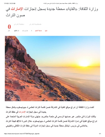 7/14/25, 10:33 AM ثارﺗﻟا نوﺻ ﻲﻓ تارﺎﻣﻹا تازﺎﺟﻧإ لﺟﺳﺑ ةدﯾدﺟ ﺔطﺣﻣ «ﺔﯾﺎﻔﻟا» :ﺔﻓﺎﻘﺛﻟا ةرازو