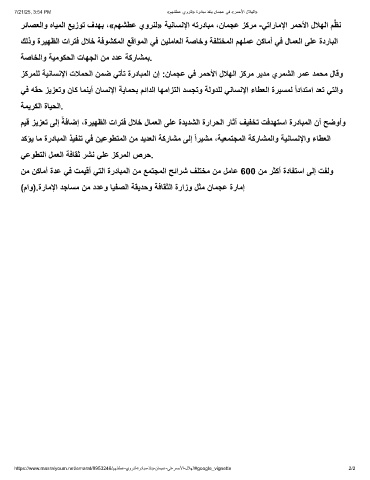 رﺋﺎﺻﻌﻟاو هﺎﯾﻣﻟا ﻊﯾزوﺗ فدﮭﺑ ،«مﮭﺷطﻋ يورﻧﻟ» ﺔﯾﻧﺎﺳﻧﻹا ﮫﺗردﺎﺑﻣ ،نﺎﻣﺟﻋ زﻛرﻣ -ﻲﺗارﺎﻣﻹا رﻣﺣﻷا لﻼﮭﻟا مظﻧ