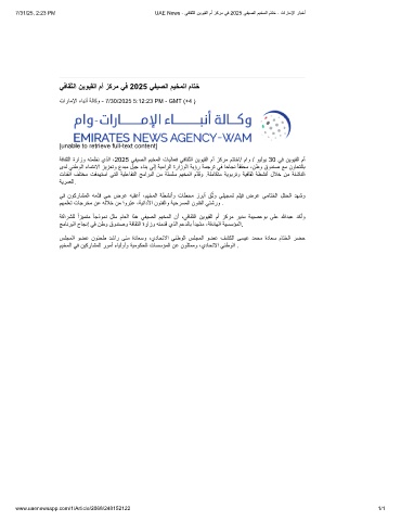 7/31/25, 2:23 PM UAE News - ﻲﻓﺎﻘﺛﻟا نﯾوﯾﻘﻟا مأ زﻛرﻣ ﻲﻓ 2025 ﻲﻔﯾﺻﻟا مﯾﺧﻣﻟا مﺎﺗﺧ - تارﺎﻣﻹا رﺎﺑﺧأ