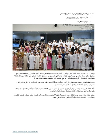 عم نواعتلاب ةفاقثلا ةرازو هتمظن يذلا ، 2025 يفيصلا ميخملا تايلاعف يفاقثلا نيويقلا مأ زكرم متتخا/ ماو / ويلوي 30 يف نيويقلا مأ