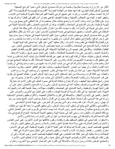 ﺎﻣﺎﻤﺗ نوردﺎﻗ تارﺎﻣﻹا بﺎﺒﺷ نﺄﺑ ،ﺔﻠﻣﺎﻜﻟا ﮫﺘﻋﺎﻨﻗ ﻦﻋ ﺮﯿﺒﻌﺗ ﻮھ ﺎﻤﻧإ مﻮﯿﻟا ءﺎﻘﻟ نأ اﺪﻛﺆﻣ ،ﮫﺗﺎﯾﺎﻏو ﻦطﻮﻟا فاﺪھﺄﺑ