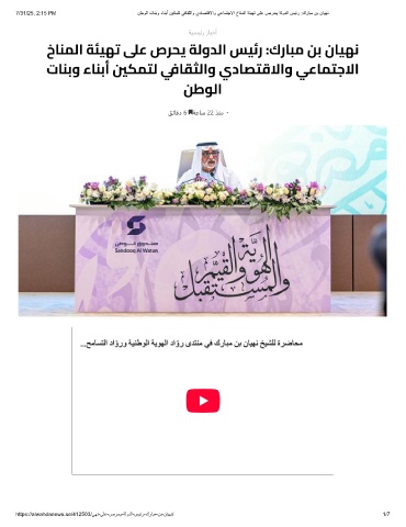 7/31/25, 2:15 PM نطوﻟا تﺎﻧﺑو ءﺎﻧﺑأ نﯾﻛﻣﺗﻟ ﻲﻓﺎﻘﺛﻟاو يدﺎﺻﺗﻗﻻاو ﻲﻋﺎﻣﺗﺟﻻا خﺎﻧﻣﻟا ﺔﺋﯾﮭﺗ ﻰﻠﻋ صرﺣﯾ ﺔﻟودﻟا سﯾﺋر :كرﺎﺑﻣ نﺑ نﺎﯾﮭﻧ