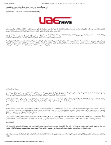 7/8/25, 9:41 AM UAE News - صﺻﻘﻟاو ﻰﻘﯾﺳوﻣﻟﺎﺑ لﻓﺎﺣ رﮭﺷ ..دﺷار نﺑ دﻣﺣﻣ ﺔﺑﺗﻛﻣ ﻲﻓ - تارﺎﻣﻹا رﺎﺑﺧأ