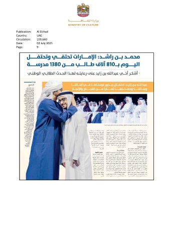Publication: Al Etihad Country: UAE Circulation: 109,640 Date: 02 July 2025 Page: 9