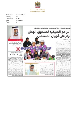 Publication: Emarat Al Youm Country: UAE Circulation: 80,000 Date: 07 July 2025 Page: 12