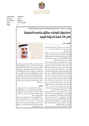 Publication: Al Bayan Country: UAE Circulation: 88,000 Date: 07 July 2025 Page: 2