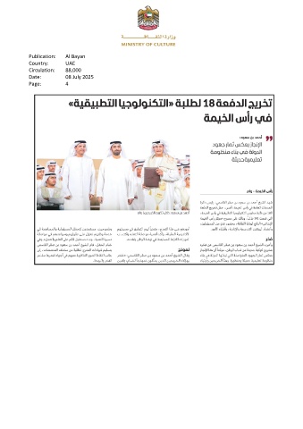Publication: Al Bayan Country: UAE Circulation: 88,000 Date: 08 July 2025 Page: 4