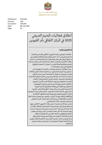 Publication: Al Etihad Country: UAE Circulation: 109,640 Date: 09 July 2025 Page: 35