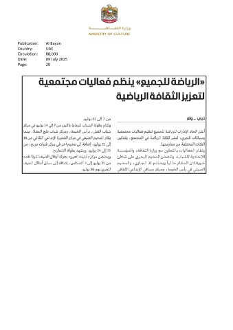 Publication: Al Bayan Country: UAE Circulation: 88,000 Date: 09 July 2025 Page: 20