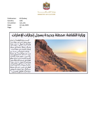 Publication: Al Khaleej Country: UAE Circulation: 121,141 Date: 13 July 2025 Page: 19