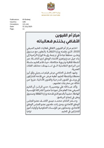 Publication: Al Khaleej Country: UAE Circulation: 121,141 Date: 31 July 2025 Page: 11
