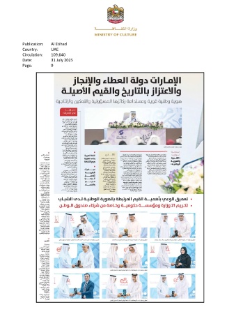 Publication: Al Etihad Country: UAE Circulation: 109,640 Date: 31 July 2025 Page: 9
