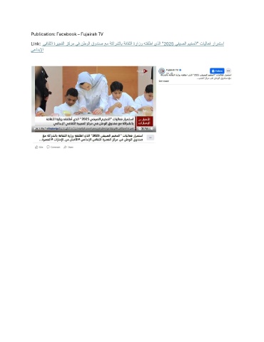 Publication: Facebook – Fujairah TV Link: يفاقثلا ةريجفلا زكرم يف نطولا قودنص عم ةكارشلاب ةفاقثلا ةرازو هتقلطا يذلا "2025 يفيصلا ميخملا" تايلاعف رارمتسا يعادبلإا